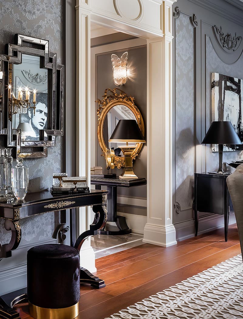 Một phòng khách Art Deco được coi là chuẩn mực, khi kết hợp được những món đồ cổ điển với những yếu tố trang trí lộng lẫy. Sự kết hợp này sẽ mang lại vẻ quyến rũ & cuốn hút cho không gian.