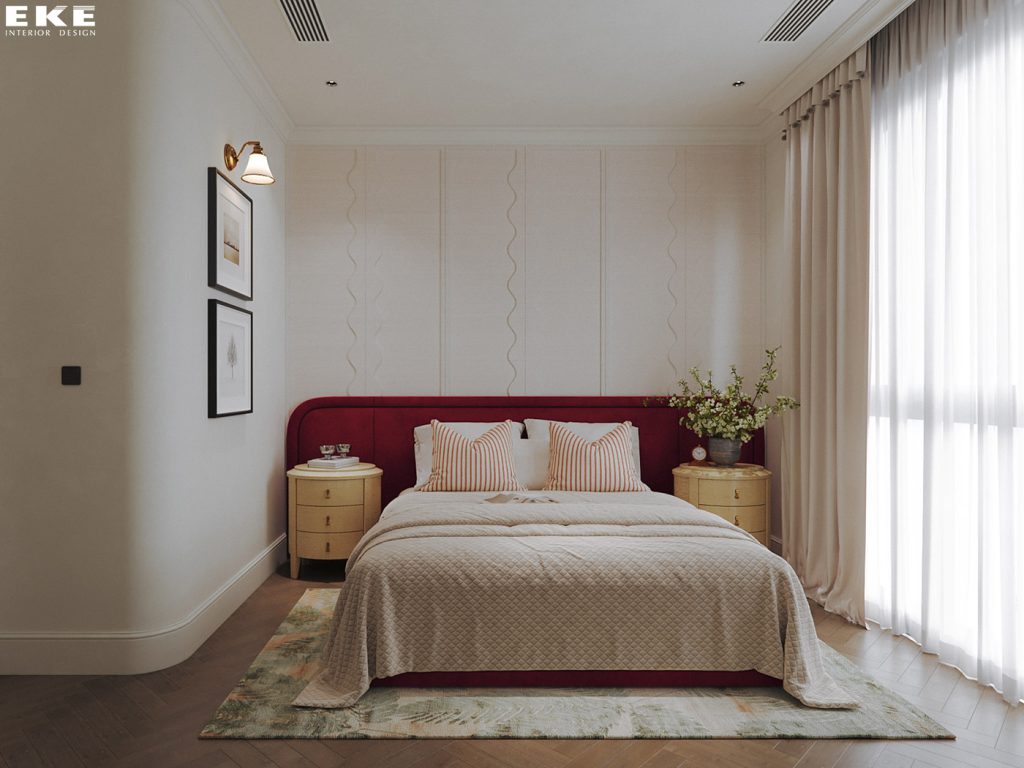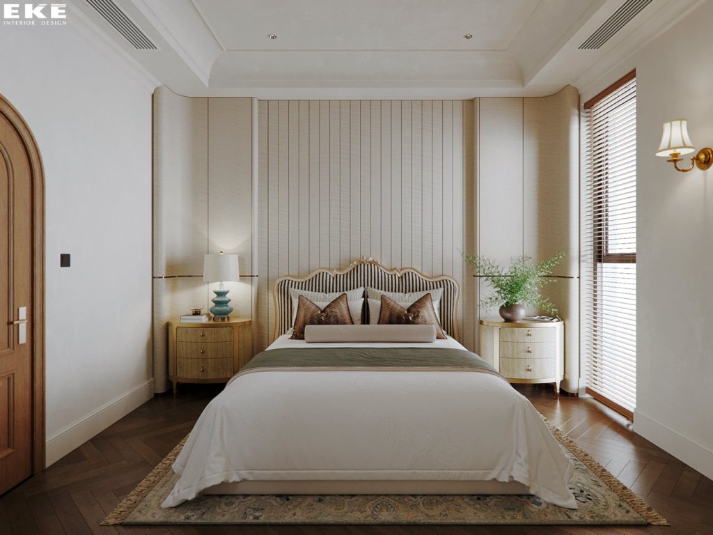 Nội thất phòng ngủ master được thiết kế như một chốn nghỉ dưỡng riêng tư. Nơi mọi chi tiết đều hướng đến sự thư giãn sâu sắc ngay từ khoảnh khắc đầu tiên.