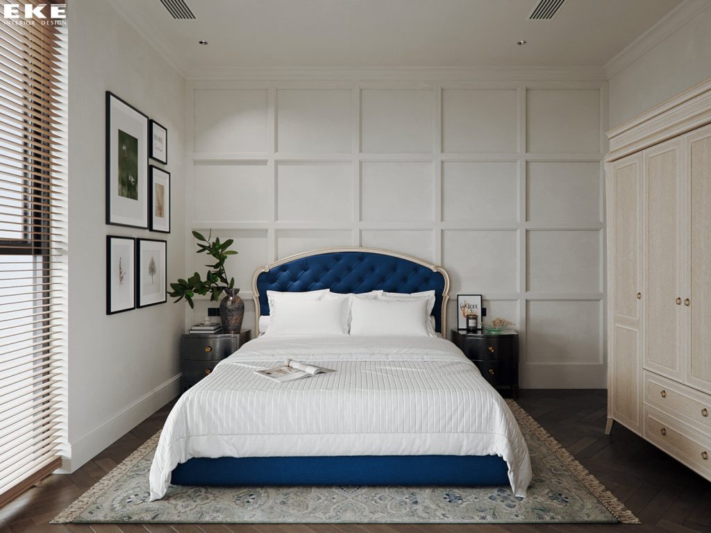 Không gian tầng 3 được thiết kế dành riêng cho các khối phòng ngủ. Tại đây, phong cách nội thất Pháp – Địa Trung Hải được sử dụng làm ý tưởng chủ đạo. Mục đích để tạo sự nhẹ nhàng và lãng mạn.